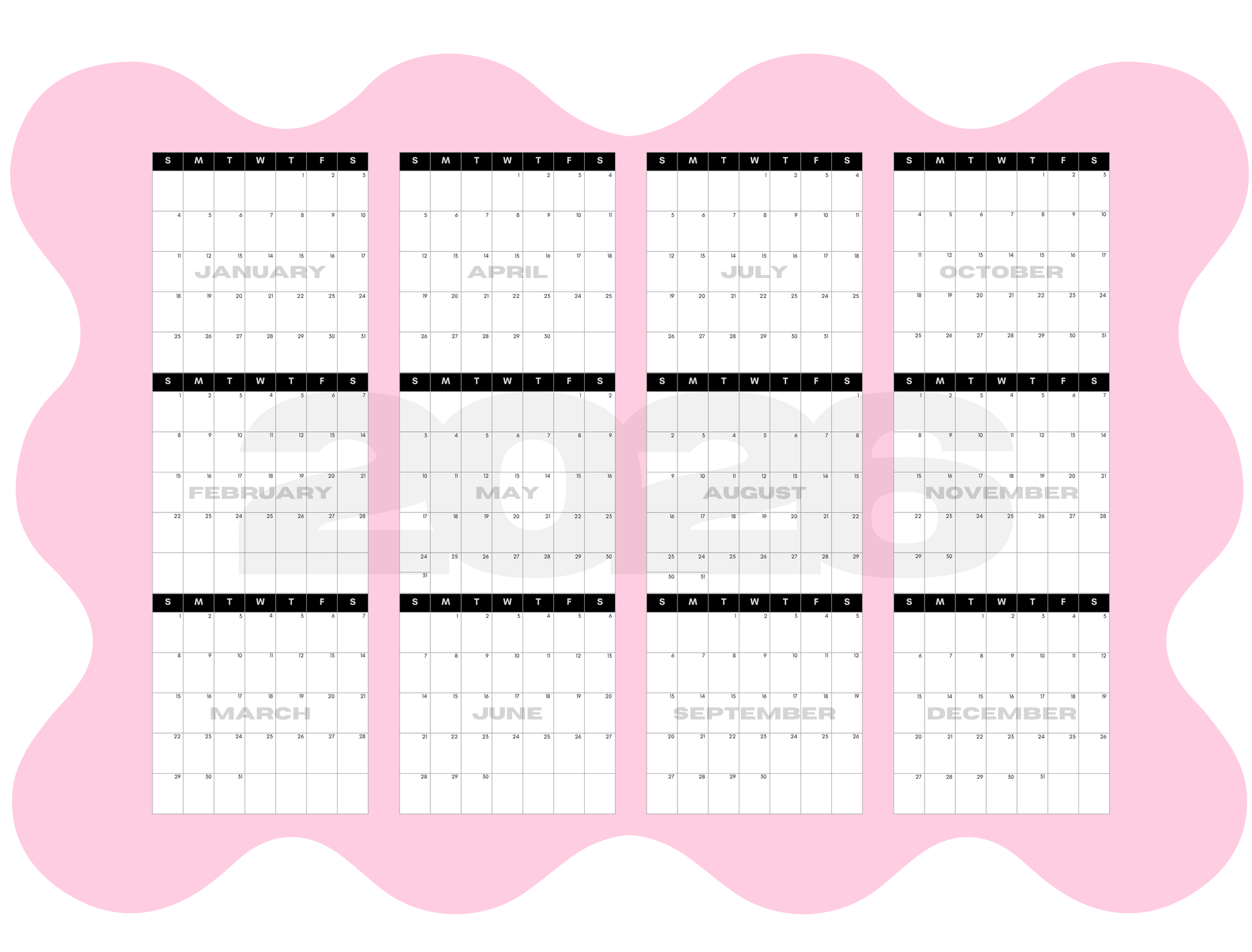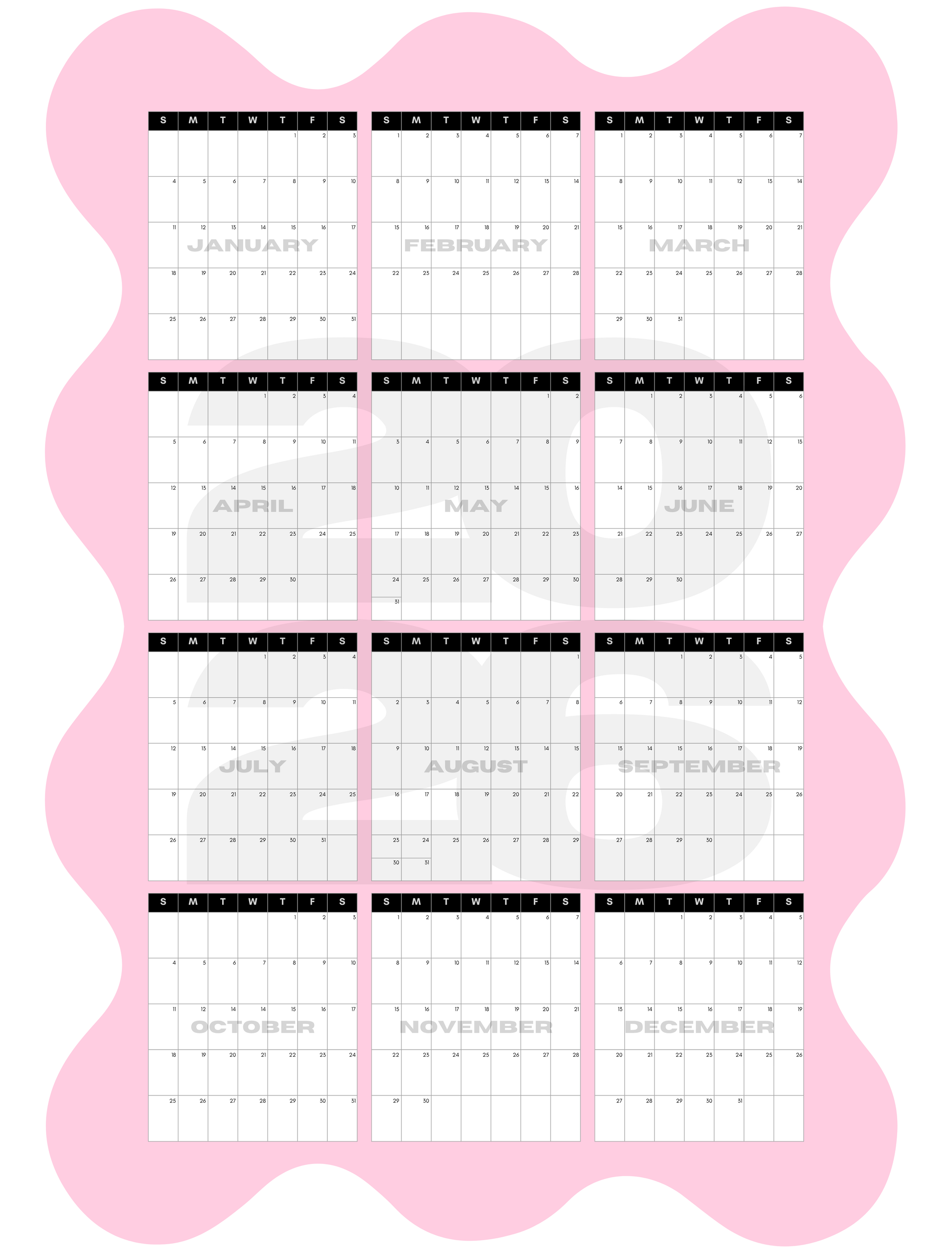 Elevate your planning with the 2026 XL Wavy Wall Calendar, designed to help you visualize your entire year at a bird's eye view. Its fun wavy edges and modern look make it a standout addition to any office or home. Choose between bold pink or classic black, and enjoy the versatility of a dry erase surface that works both vertically and horizontally. Transform your scheduling routine into a stylish, effortless experience in 2026!